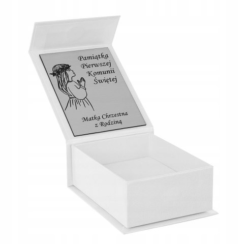 Śliczna bransoletka z aniołkiem zapakowany w ozdobne pudełeczko z grawerem idealna na komunię lub chrzest święty